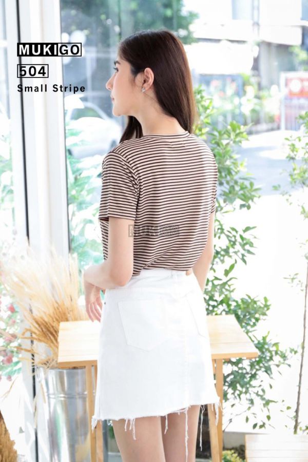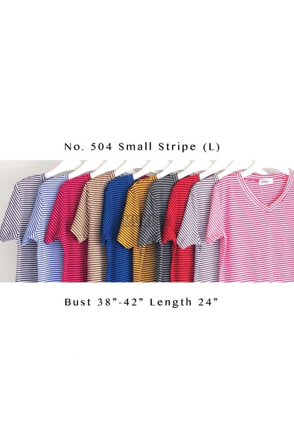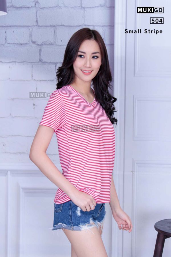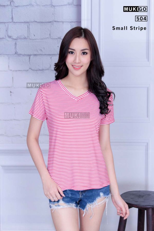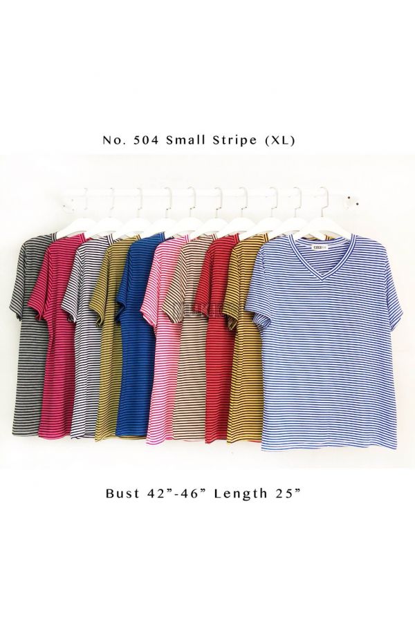 Basic V Tee - เสื้อยืด คอวี ลายริ้วเล็กถี่ แขนสั้น