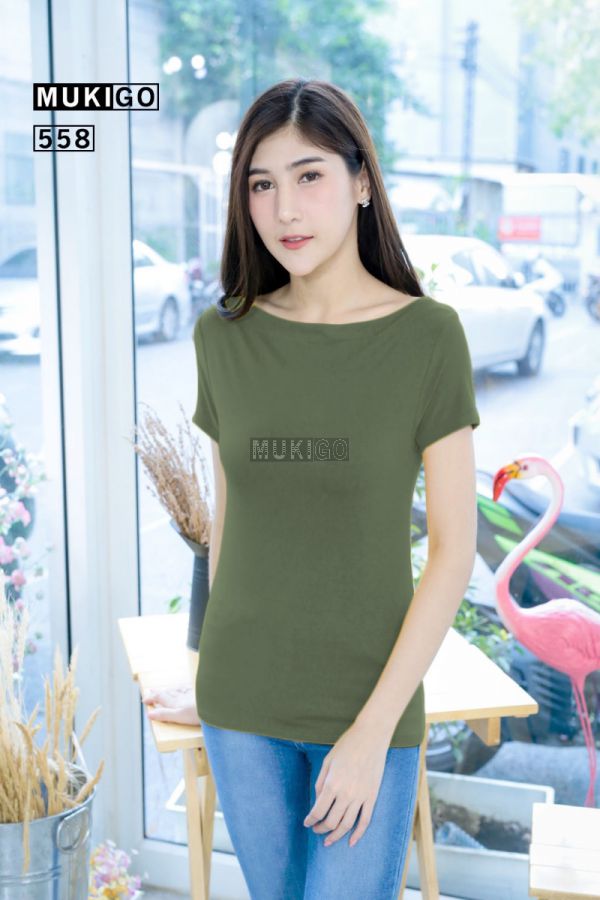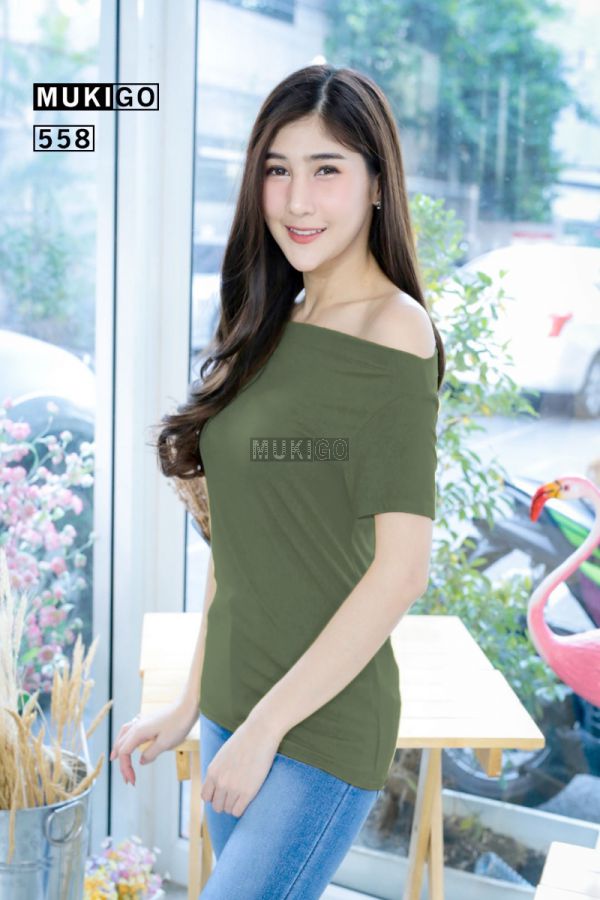 เสื้อคอปาด เปิดไหล่ รุ่นเรียบหรู - สีเขียวทหาร