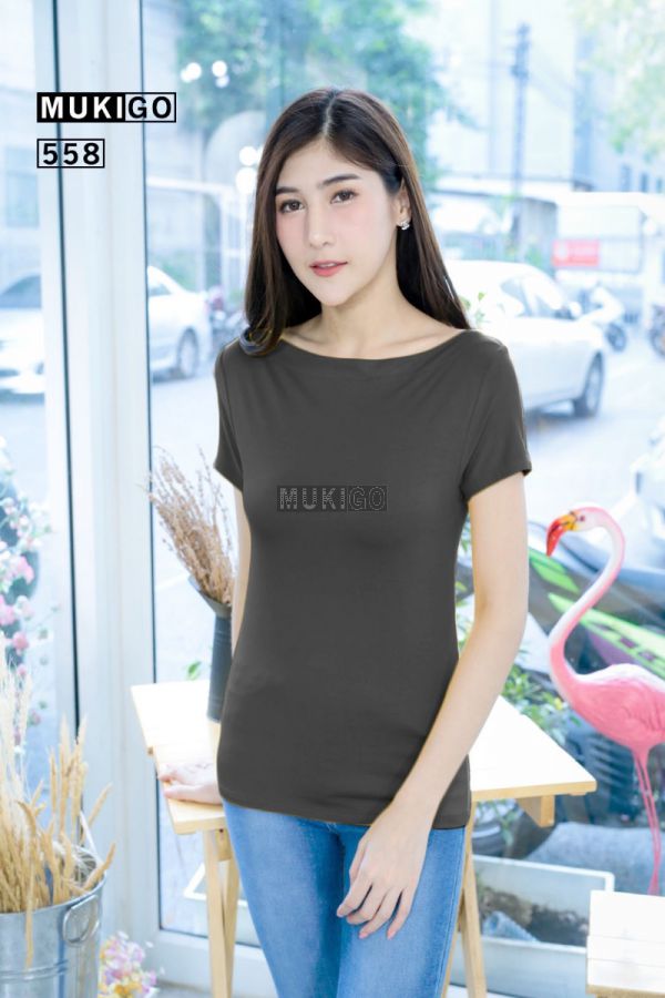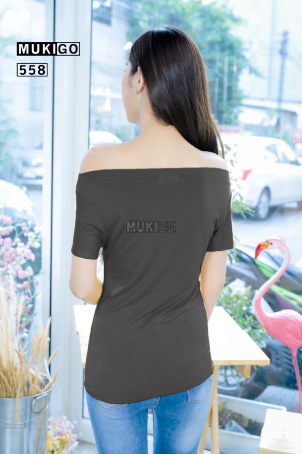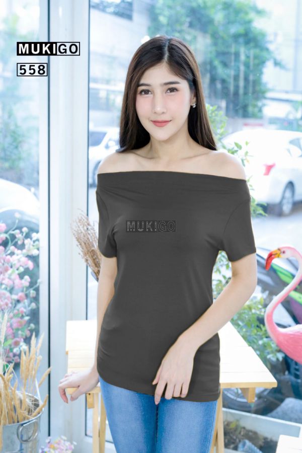 เสื้อคอปาด เปิดไหล่ รุ่นเรียบหรู - สีเทาดำ