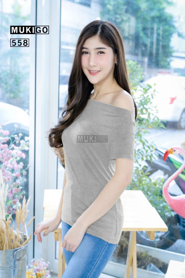 เสื้อคอปาด เปิดไหล่ แขนสั้น รุ่นเรียบหรู
