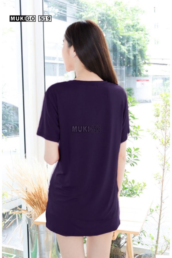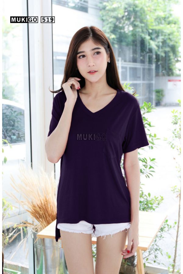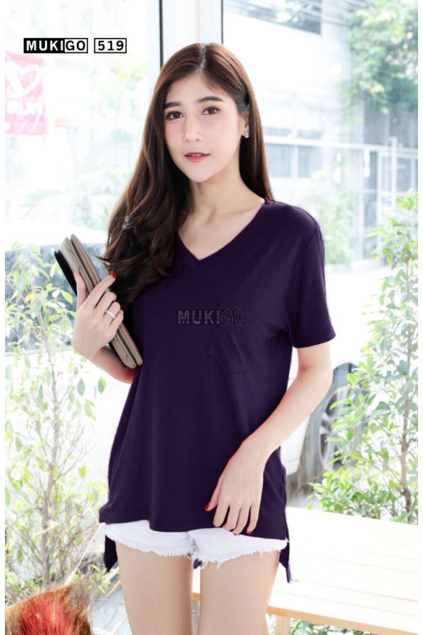 Oversized Side Slit V Tee with Pocket - Dark Violet