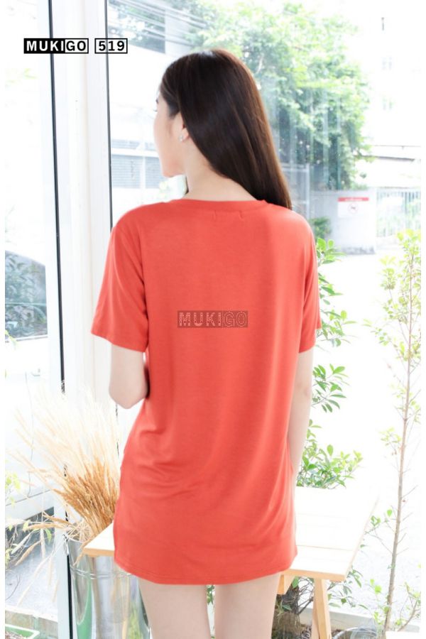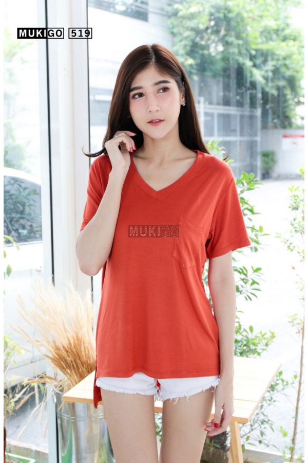 Oversized Side Slit V Tee with Pocket - OrangeBrick
