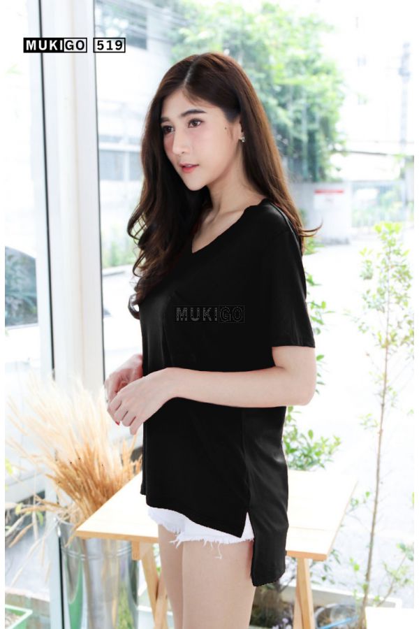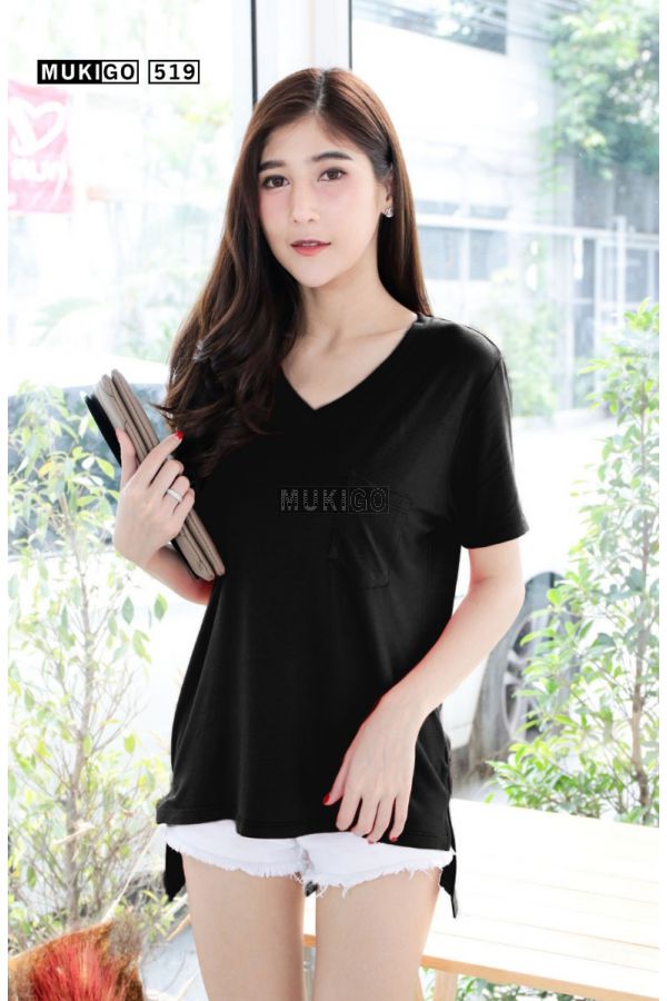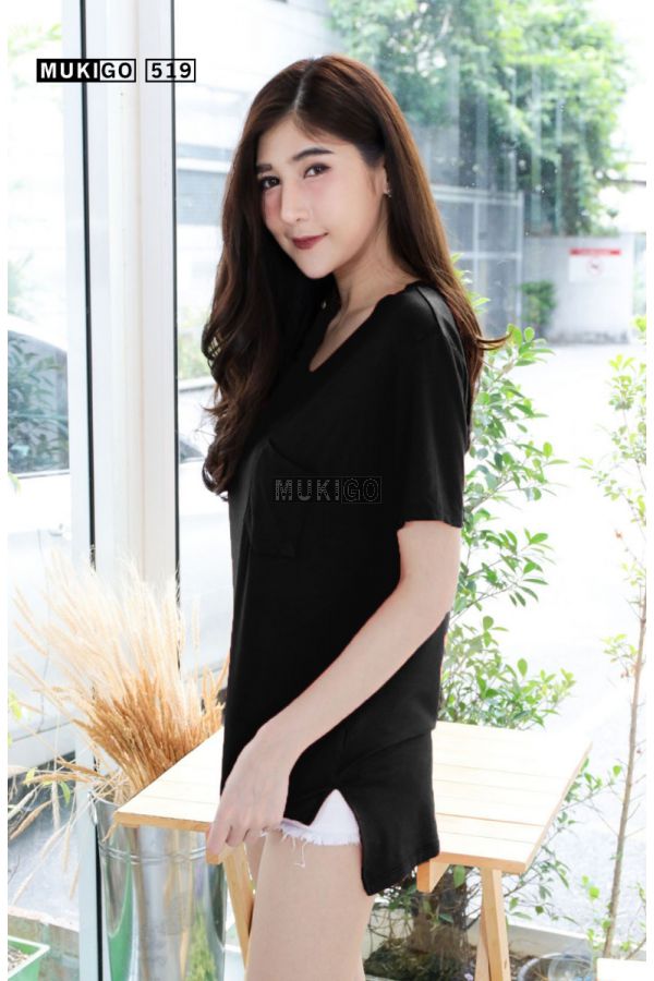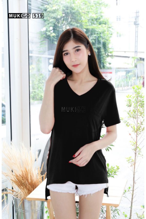 เสื้อยืดแขนสั้น คอวีกุ๊นใหญ่ แต่งดีเทลกระเป๋าเก๋ๆ ทรงตัวหลวม โอเวอร์ไซส์ ทรงสวยมากๆ เพิ่มความอิสระช่วงสะโพก ด้วยชายเสื้อผ่าข้าง ด้านหน้าสั้น หลังยาว รหัสรุ่น: 519ขนาด: รอบอก 42” (ยืดได้อีก 4-6” ได้ถึง 48”) เสื้อยาว: ด้านหน้ายาว 24” ด้านหลังยาว 28”