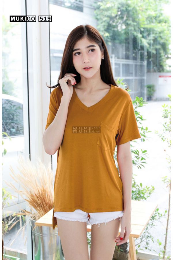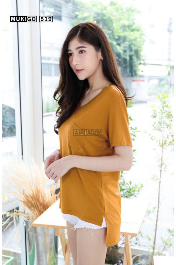 เสื้อโอเวอร์ไซส์ คอวี แต่งกระเป๋า ผ่าชายเสื้อ หน้าสั้นหลังยาว สีทอง
