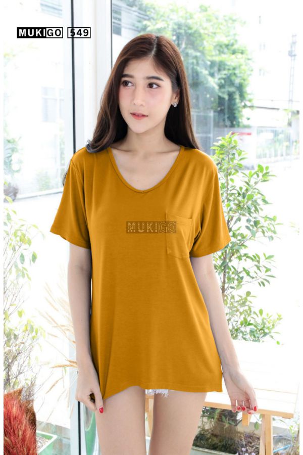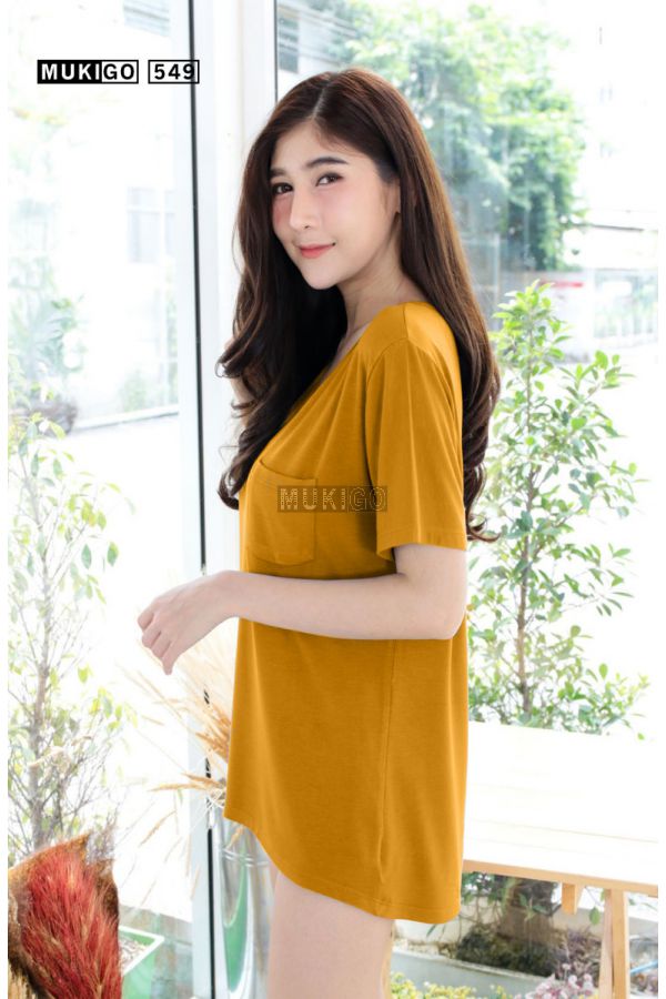 เสื้อโอเวอร์ไซส์ คอวี แต่งกระเป๋า ปลายเสื้อโค้ง - Oversized V Tee with Pocket (Round bottom shaped)เสื้อโอเวอร์ไซส์ คอวีกุ๊นเล็ก แต่งกระเป๋า ปลายเสื้อโค้งมน หน้าสั้นหลังยาวเสื้อยืด ตัวหลวม คอวีกุ๊นเล็ก ทรงสวยมากๆ ปลายเสื้อเว้าโค้งมนสวย จากด้านหน้าสั้นโค้งเว้าไปยาวด้านหลัง เก๋มีสไตล์ไม่ซ้ำอีกทั้งยังมีดีเทล กระเป๋าเล็กๆ ตกแต่งให้ดูมีอะไรๆยิ่งขึ้นสำหรับ สาวๆผอมเพรียวหุ่นดี ใส่เป็นเสื้อทรงโอเวอร์ไซส์ Oversize แนวเสื้อทรงหลวมๆได้เลย แลดูสบายๆส่วนสาวอวบ ก็เลือกใส่ได้ เป็นทรงขนาดพอดีตัว ใส่เป๊ะ ปลายเสื้อทรงกว้างออก ไม่อึดอัด รหัสรุ่น: 549ขนาด: รอบอก 42” (ยืดได้อีก 4-6” ใส่ได้ถึงอก 48”) เสื้อยาว: ด้านหน้ายาว 24” และ ด้านหลังยาว 28”เนื้อผ้า: 94% เรย่อน + 6% สแปนเด็กซ์ผลิตในประเทศไทย